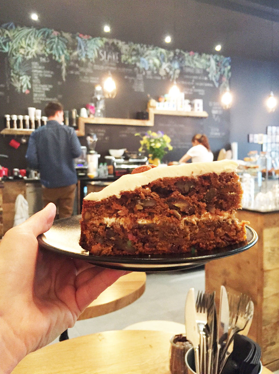 Un coffee shop où on peut prendre le petit déjeuner, déjeuner le midi ou prendre le goûter. J’adore la déco et l’ambiance de ce café. Le carrot cake est bien généreux, épicé, mais je n’aime pas les raisins secs, ni les trop gros morceaux de noix dans le gâteau… Je préfère quand c’est plus mixé et homogène ;)