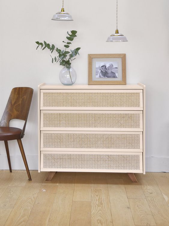 - Commode cannage vert ou rose 449€