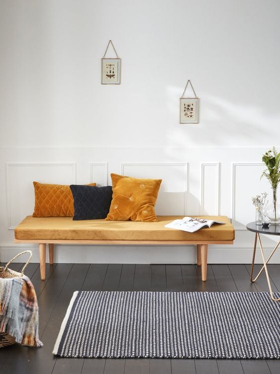 - Banquette en bois et velours 379€
