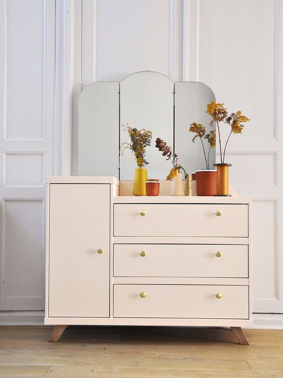 - Meuble miroir commode vintage rose – 389€
