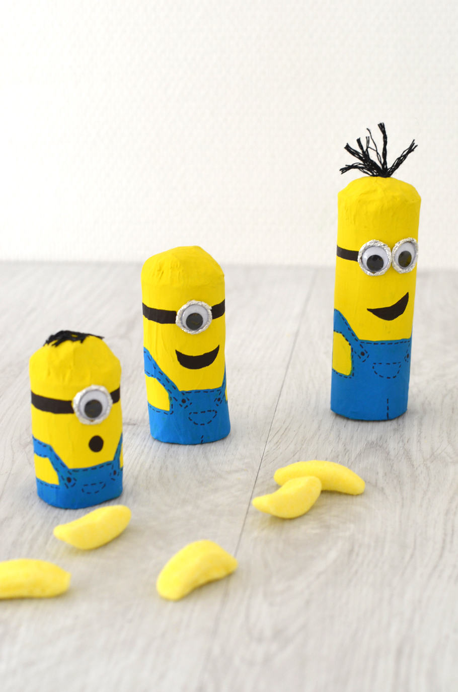 Je vous propose un tuto pas à pas pour fabriquer des Minions trop mignons, avec des rouleaux d’essuie-tout ou de papier toilette.